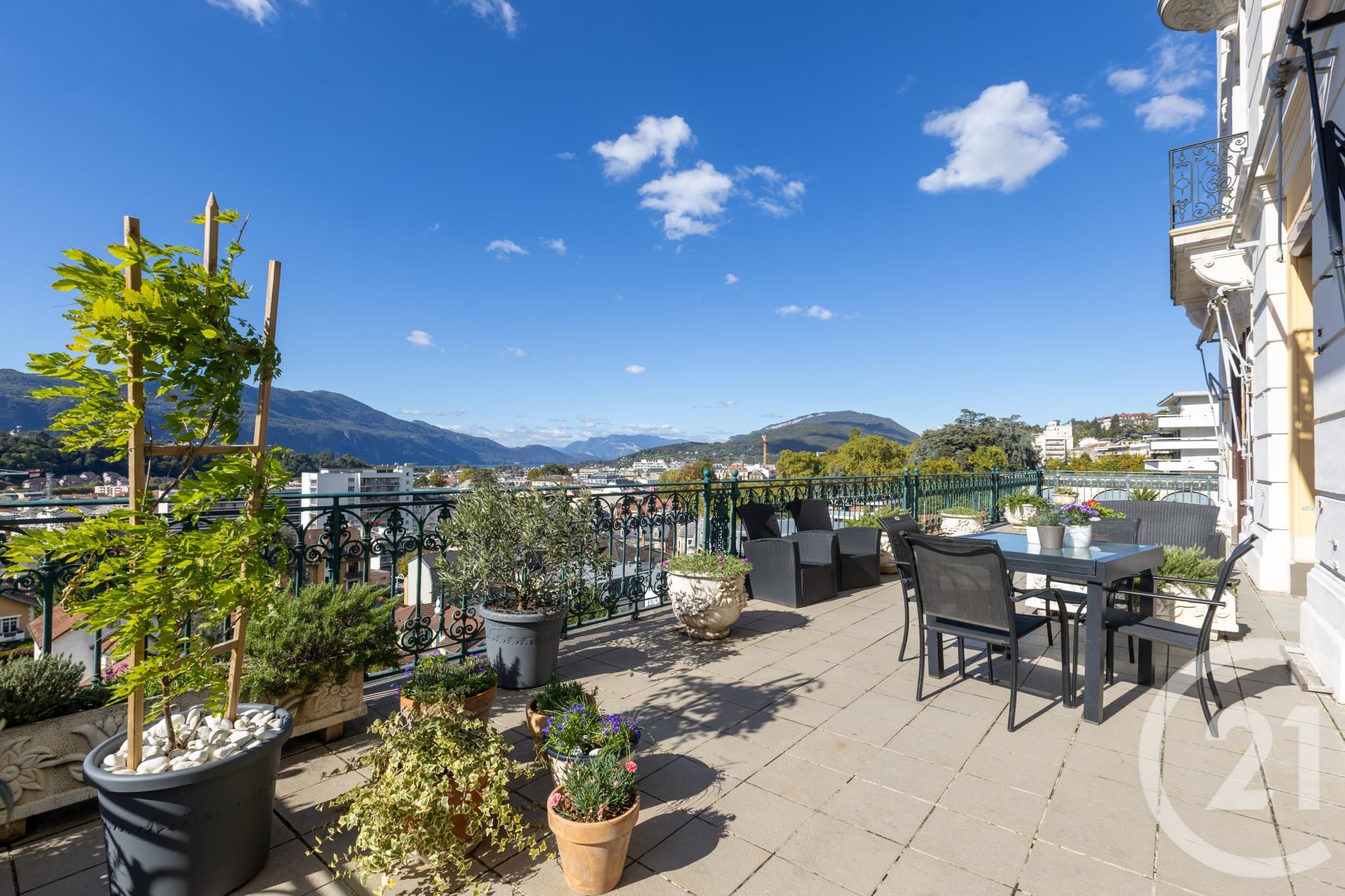 L'atout majeur, une terrasse de plus de 80m² avec vue panoramique sur les toits de la ville, la dent du chat ainsi que le lac du Bourget !
